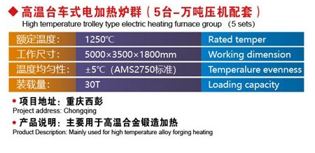 高溫臺(tái)車式電加熱爐群(5臺(tái)-萬(wàn)噸壓機(jī)配套)