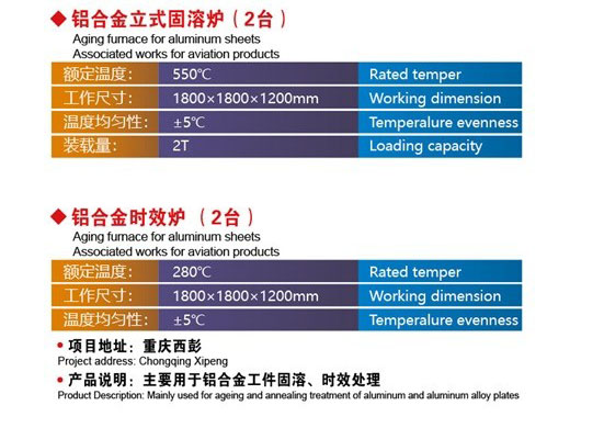 鋁合金立式固溶爐(2臺)鋁合金時(shí)效爐(2臺)